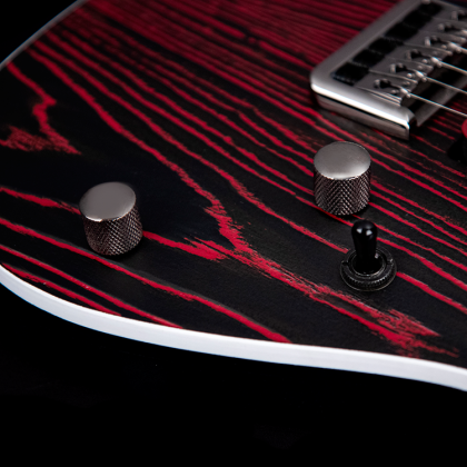 Zestawiony z mahoniowym korpusem top z piaskowanego jesionu bagiennego został wykończony na czarno, a wyżłobienia słojów pomalowano na czerwony lub złoty kolor, co dodaje instrumentom bardzo interesującej prezencji. Przykręcany gryf z kanadyjskiego klonu cukrowego wieńczy podstrunnica z Pau Ferro o promieniu 15,75" (400 mm). Menzura wynosi 25,5"(648 mm).