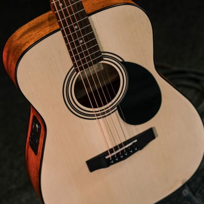 Rozmiar koncertowy korpusu jest nieco mniejszy od Drednaught. Pozwala to na uzyskanie bardziej skoncentrowanego i zrównoważonego dźwięku. z nieco mniejszym basem ale uwypuklonym środkiem. ten instrument idealnie sprawdza się w Fingerpicking style oraz grze solowej.