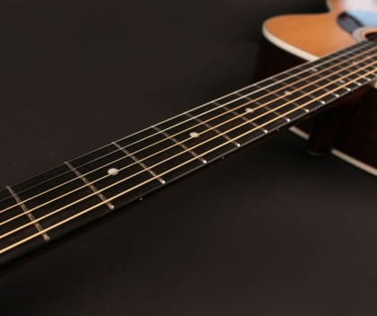 Top z litego świerku Sitka poprawionego w procesie torryfikacji, boki i tył korpusu wykonane z palisandru, podstrunnica i mostek z hebanu,