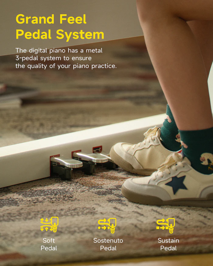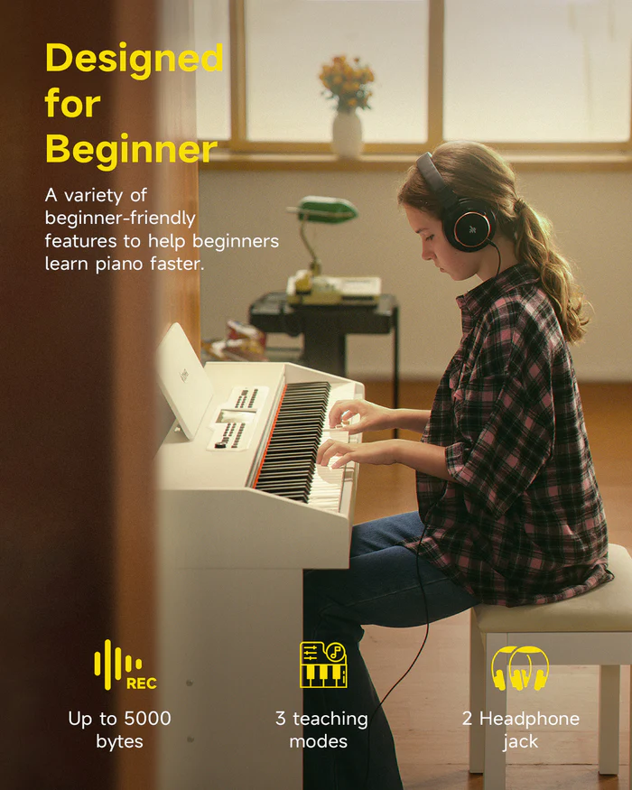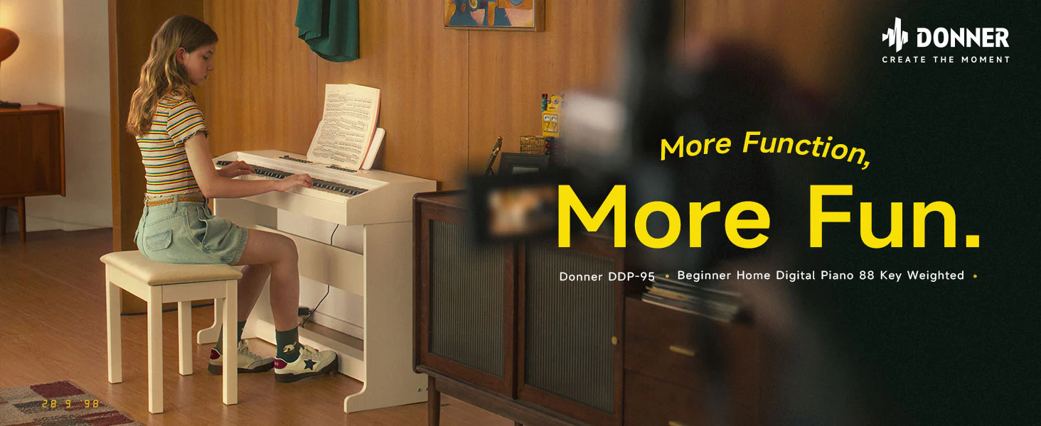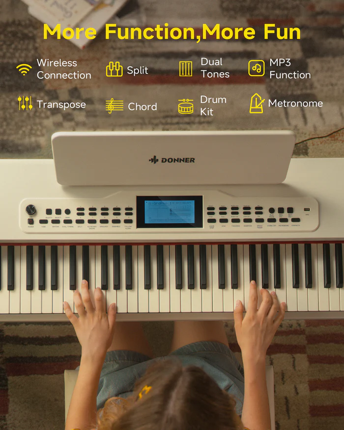 Donner DDP-95 to kompletne pianino cyfrowe, które łączy w sobie realistyczne wrażenia gry, rozbudowane funkcje edukacyjne i nowoczesny design.