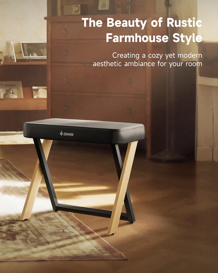 Nogi ławki do pianina łączą w sobie jasne drewno z czarnym metalem, tworząc idealne połączenie klasycznej elegancji i nowoczesnego minimalizmu. Ten wyjątkowy design doda Twojemu pomieszczeniu odrobiny estetycznego uroku.