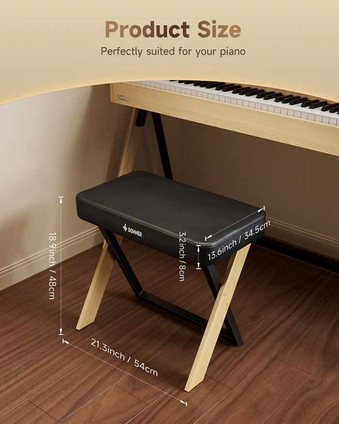 Dzięki wysokości 48 cm (18,9 cala) ławka idealnie nadaje się do Twojego pianina. Posiada również gąbkową poduszkę o grubości 8 cm (3,2 cala), zapewniającą długotrwały komfort podczas ćwiczeń i występów.