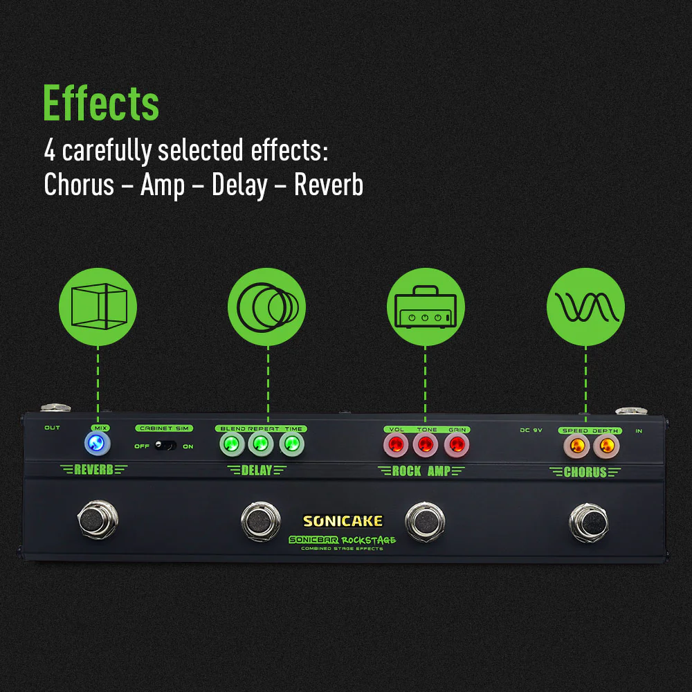 SONICAKE QCE-10 Rock Stage – multiefekt gitarowy 4w1 do klasycznego rocka